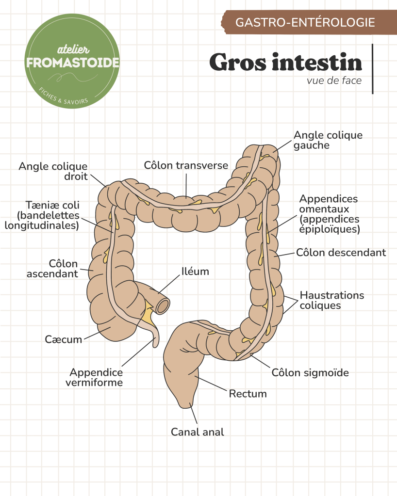 Le gros intestin, aussi appelé côlon, est la dernière partie du tube digestif.